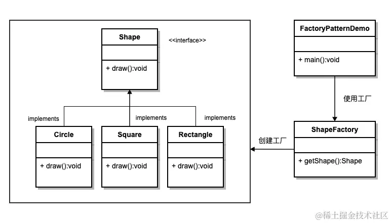 - 客户端只需要和工厂类交互,而不需要直接创建具体的形状对象。