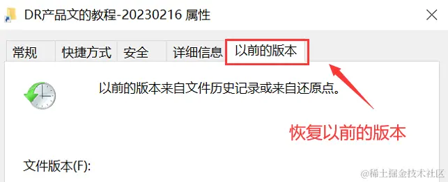 第2步:切换到 【以前的版本】 ,此时可以对以前的版本进行查看,然后选择需要恢复的版本,点击【还原】。