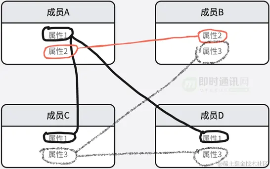 **例如:**A企业希望和B企业,C企业 三家之间的销售类员工实现充分的互联互通,而又不希望其他类型的员工暴露给对方企业。那么让这么多家企业的员工去互加好友的方式就明显太过麻烦了,即便这样做了,由于员工的流动性,不断有入职和离职,这个工作量就更大了。更麻烦的是,当某员工从销售岗位变成了售后或者采购等其他不希望互联互通的岗位,又怎样去除这些关系?所以必须依赖属性的维度来完成这些工作。