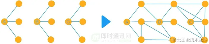 当进入到云端,因为每一个代表人的原点,都是独立存在而不重复的,每个人的关系链就是可以互相链接起来的,结合更多人的通讯录成员关系,就会形成一张巨大的网状结构。
