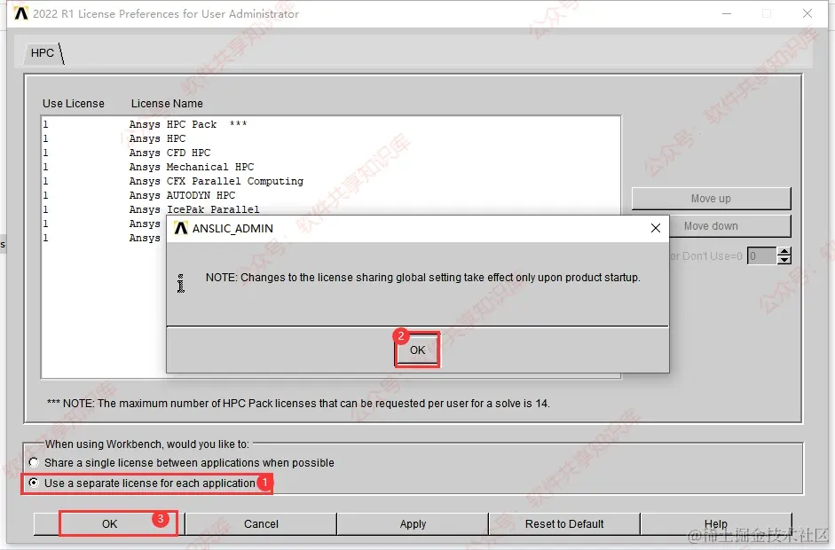 29.①选择【Use a separate license ……】②点击【OK】③点击【OK】。
