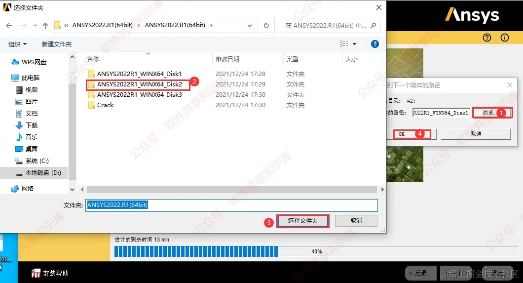 ②打开解压后的【ANSYS2022.R1(64bit)】文件夹,选中【ANSYS2022R1_WINX64_Disk2】文件夹