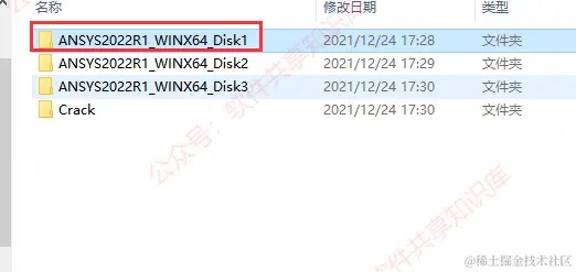 2.进入解压后的文件夹,双击打开【ANSYS2022R1_WINX64_Disk1】文件夹。