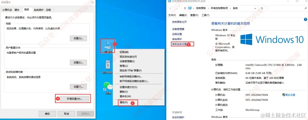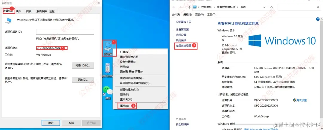 右键此电脑→属性→高级系统设置→计算机名,然后选择复制计算机名。