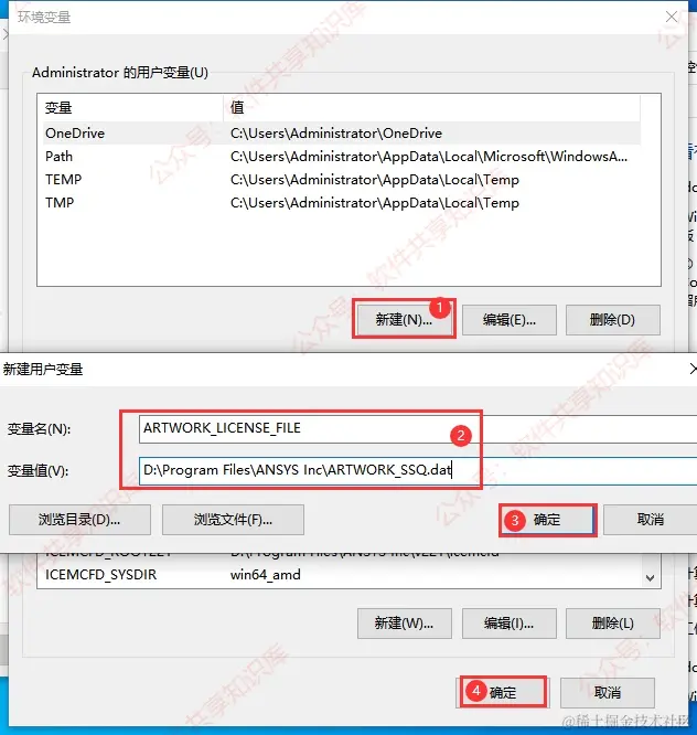 ②输入变量名【ARTWORK_LICENSE_FILE】和变量值【D:\Program Files\ANSYS Inc\ARTWORK_SSQ.dat】