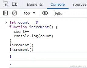 上述代码是实现了计数器的需求,但是代码存在风险,count变量是全局定义的,在后续开发中或者是其他人维护时可以轻易修改这个变量,导致bug出现。