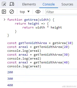 上面代码里,假设我们需要这个计算矩形面积的函数,来计算宽度总是10的多种情况,那就需要多次调用getArea函数传入相同的宽度参数,且在维护的时候,假设需要统一修改宽度为20,就需要重复修改每一次调用时宽度的传参,这样重复的工作在力求优雅的情况下看来是不合适的。
