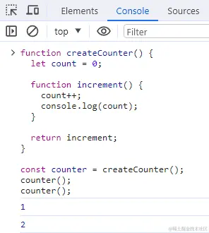 两个计数器 Counter1 和 Counter2 是维护它们各自的独立性的,每次调用其中一个计数器时,通过改变这个变量的值,会改变这个闭包的词法环境,不会影响另一个闭包中的变量