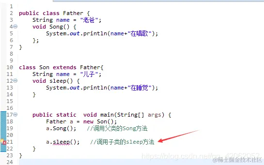 ((Son)a).sleep(); //调用子类的sleep方法