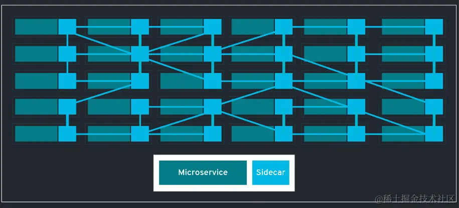 下面这个经典的架构图大家可能也看到过,绿色模块是我们的业务应用,蓝色模块就是独立进程 Sidecar,当担微服务的代理角色,负责服务发现、网络通讯,流量控制,安全认证等所有的服务治理工作。