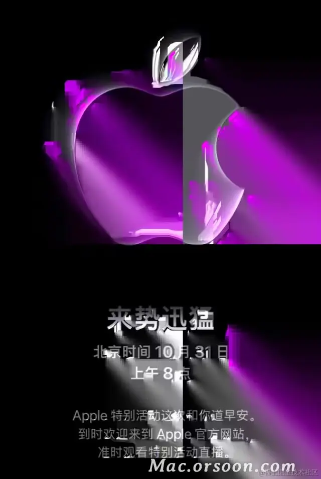 10 月 25 日消息,苹果宣布将于北京时间 10 月 31 日上午 8 点举行主题为“来势迅猛”的线上特别活动,届时或将有新品发布。