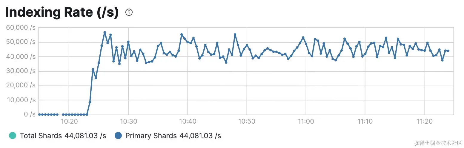 看起来我们有一组很好的候选方案可以最大化单个索引的吞吐量,每秒处理 12K 到 14K 文档。 这并不意味着我们已经达到了上限。 尽管搜索操作是单线程的,并且每个切片都会触发顺序搜索操作来读取数据,但这并不妨碍我们并行读取多个索引。