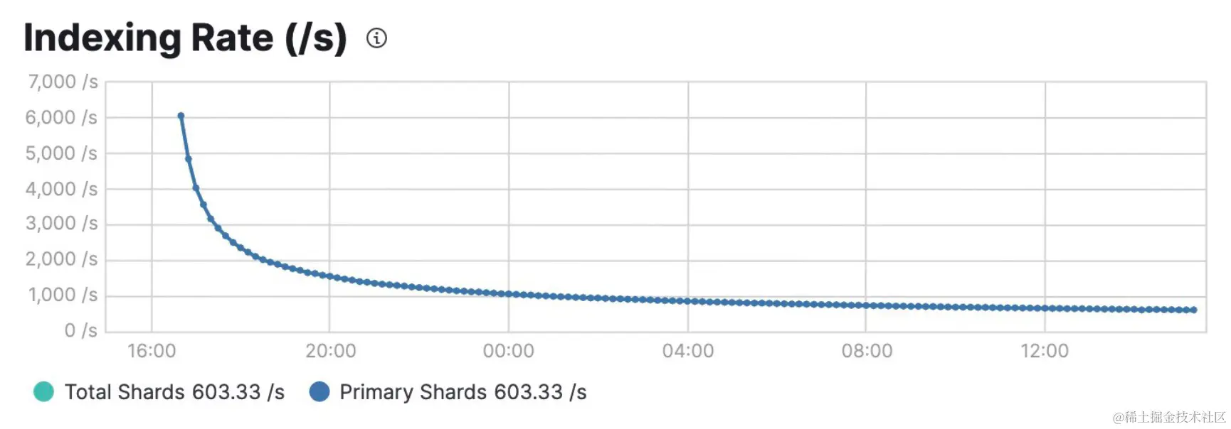 对于如此大的数据集,随着深度分页的进行,滚动速度会减慢。 索引速率从 6,000 个文档/秒开始,然后稳步下降到 700 个文档/秒,因为分页变得非常深。 如果不进行任何优化,我们需要 19 天(!)才能迁移 10 亿个文档。 我们可以做得更好!
