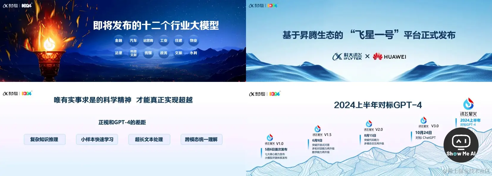 为了在大模型时代与各个行业更深度地对接,讯飞联合行业龙头共同发布12个行业大模型,包括金融、汽车、运营商、工业、住建、物业、法律、科技文献、传媒、政务、文旅、水利。此外,讯飞联合昇腾生态共同发布「飞星一号」大模型算力平台,并启动对标 GPT-4 的更大参数规模的星火大模型训练 ⋙ 演讲实录