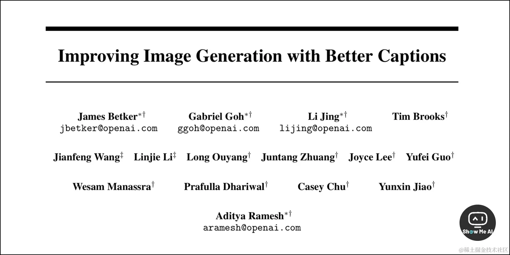 DALL-E 3 的AI绘画能力让人眼前一亮!OpenAI也顺势出了 DALL-E 3 的技术报告,重点解释了如何通过合成图像的文本描述(caption)来提升模型的生成能力。不过,技术报告提升的主要是 Prompt Following 能力,即生成的图像和输入的text prompt的一致性。对于 DALL-E 3 具体的模型架构和实现细节,OpenAI并没有具体介绍,还是有很多保留呐~