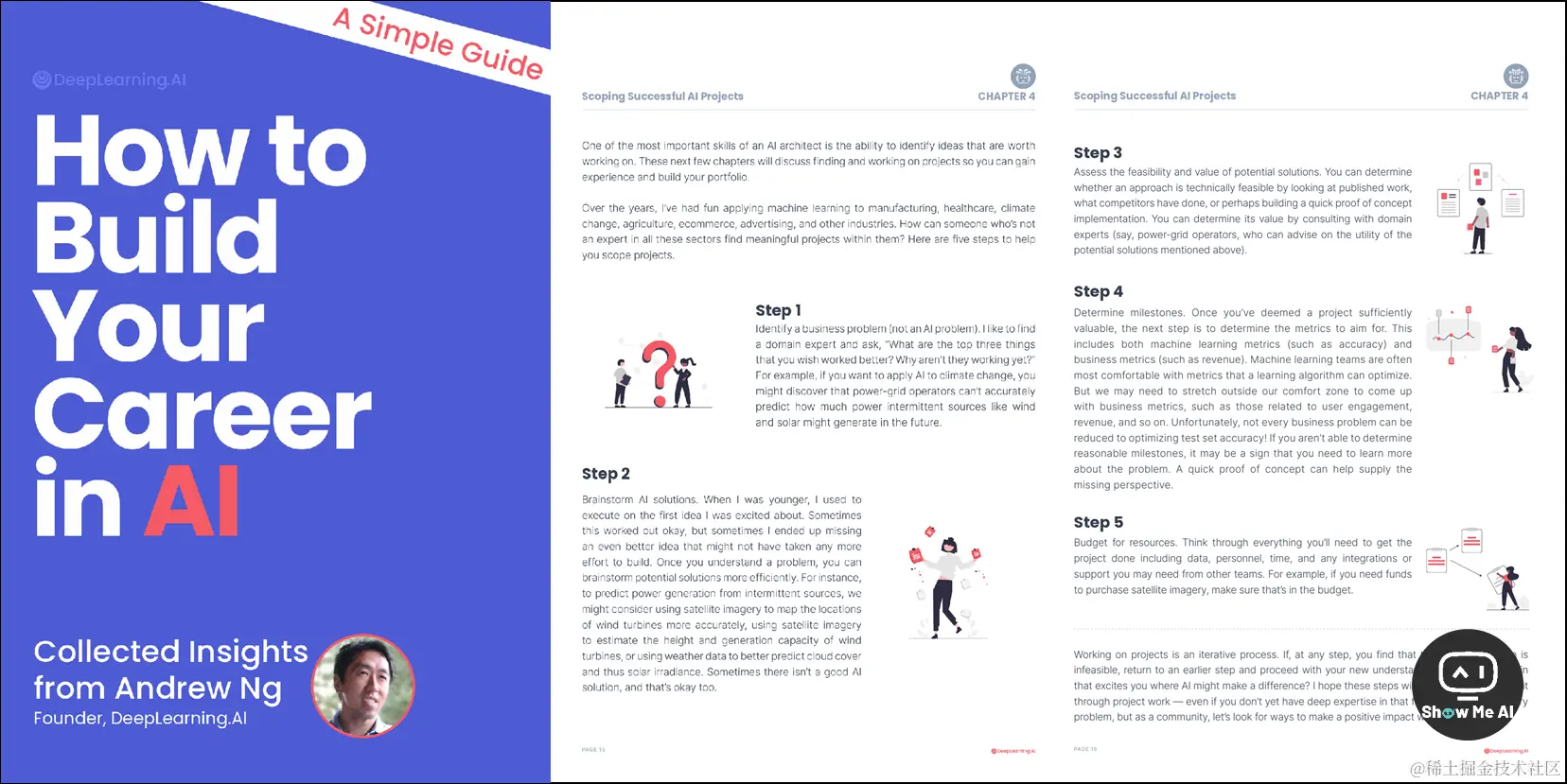 这是来自吴恩达老师的一份「人工智能职业规划指南 (How to Build Your Career in Al)」,文档共包含 11 个章节,涵盖了从学习技术技能到找到合适的工作等各个方面。
