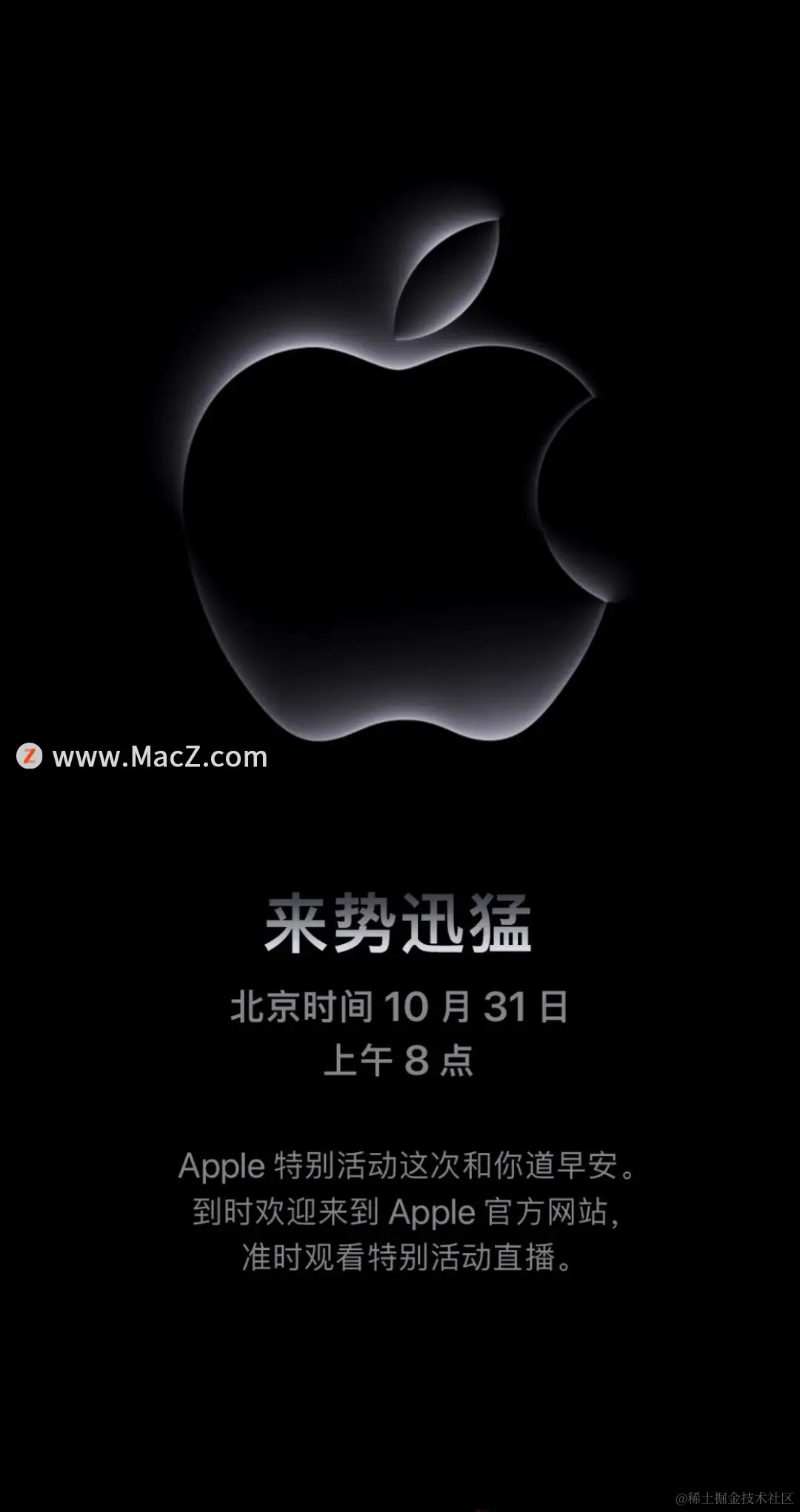 苹果宣布将于 10 月 31 日上午 8 点(北京时间)举行发布会,这次发布会的主题是「来势迅猛」,旨在为全球的苹果粉丝和科技爱好者带来令人期待的新品发布。这次发布会引人瞩目,因为它将聚焦在 Mac 系列产品以及全新的 M3 系列芯片上。