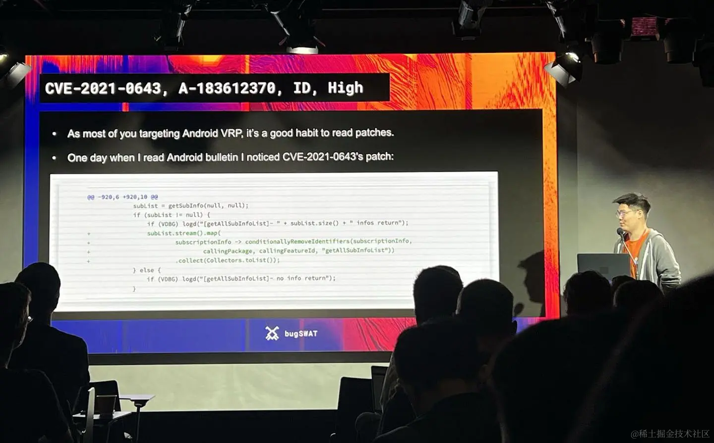 BugSWAT 2023由Google主办,伴随着今年的Hackeler8 CTF决赛开展。会议邀请了全球的安全专家,共同探讨安全洞见和分享前沿技术。受邀研究者均来自Android、Chrome等项目的顶级漏洞研究专家。