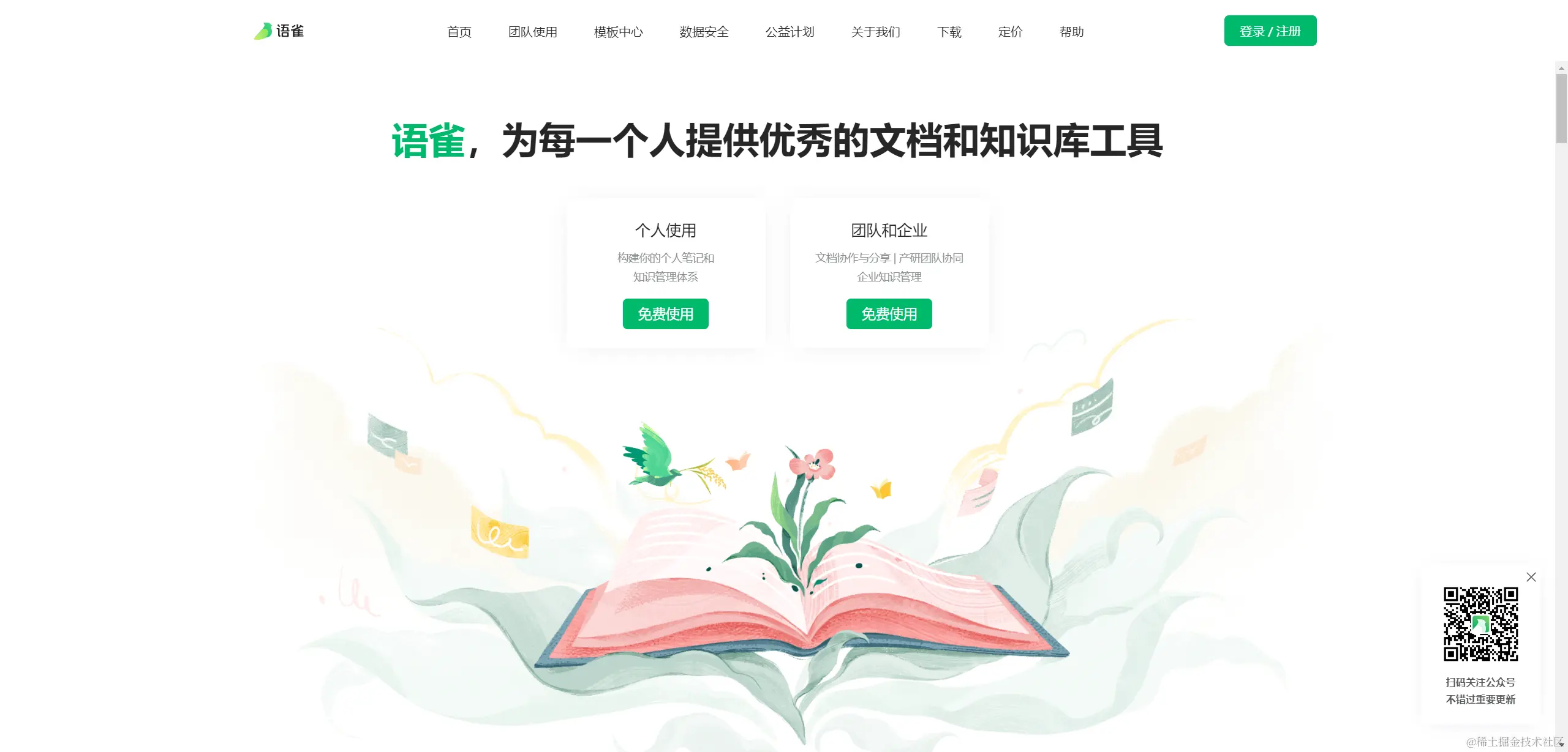 语雀,为每一个人提供优秀的文档和知识库工具。