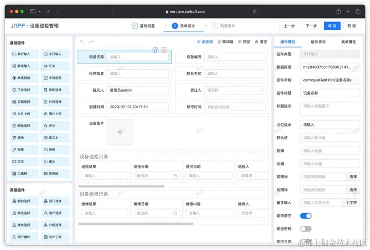 零代码开发:配备大量可复用控件,通过操作界面元素,拖拽控件自动生成可视化应用;