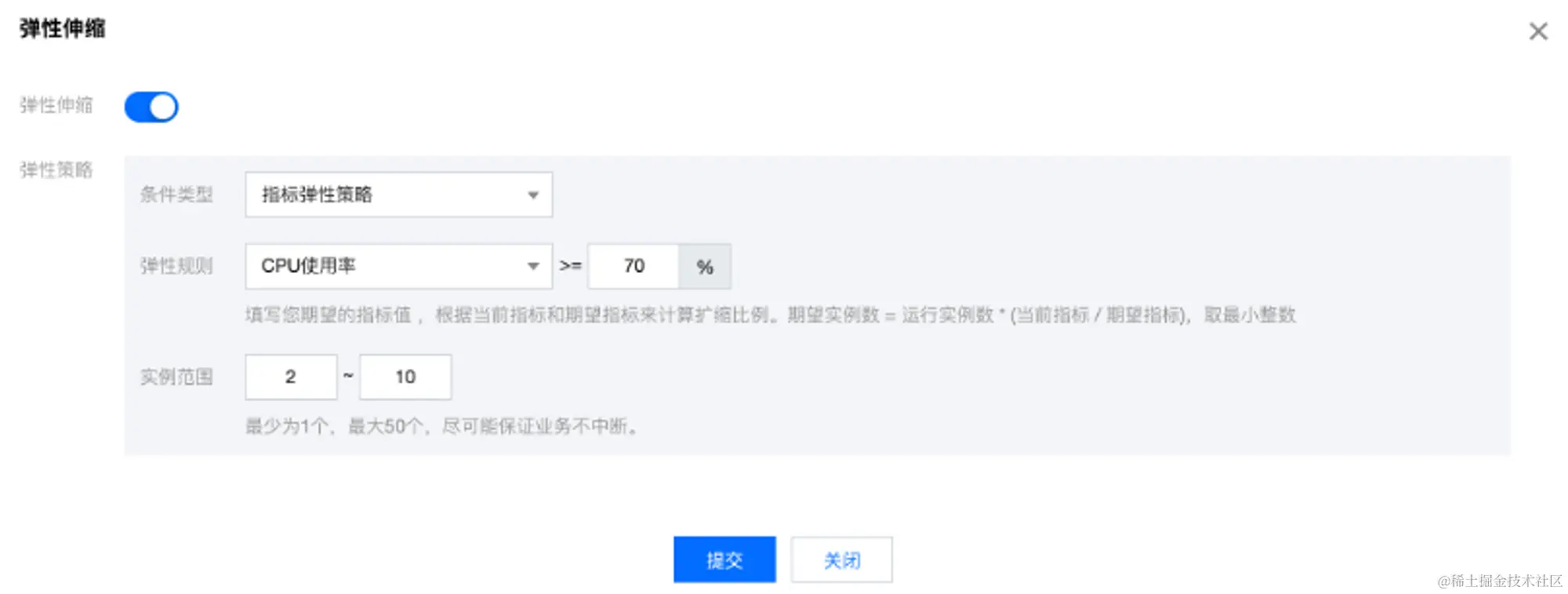 弹性伸缩的策略也非常丰富,支持定时伸缩与指标伸缩。