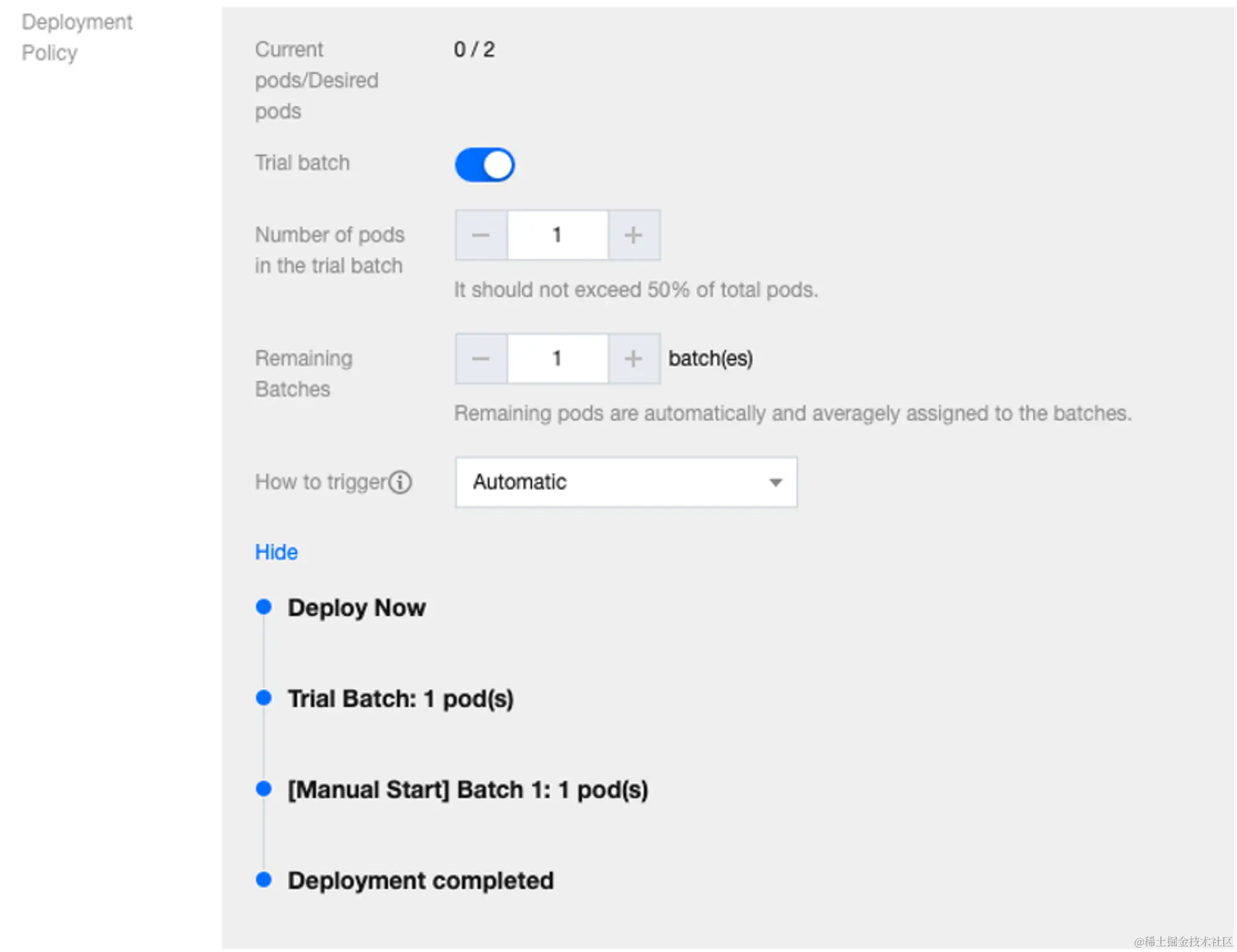 如果某个批次的发布有任何问题,可以马上选择回滚,不会影响线上业务。