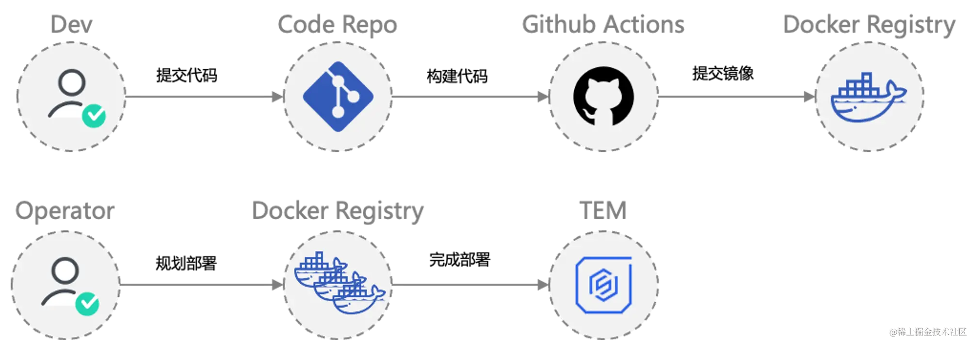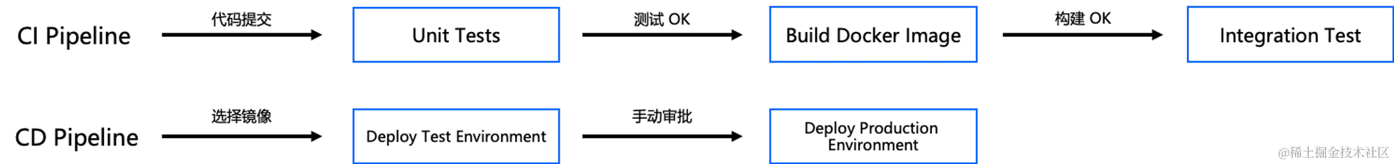 因此快速且安全的发布也必不可少。于是 KMS 搭建了一套能在弹性微服务上快速部署的 CICD 流程。如下图所示。