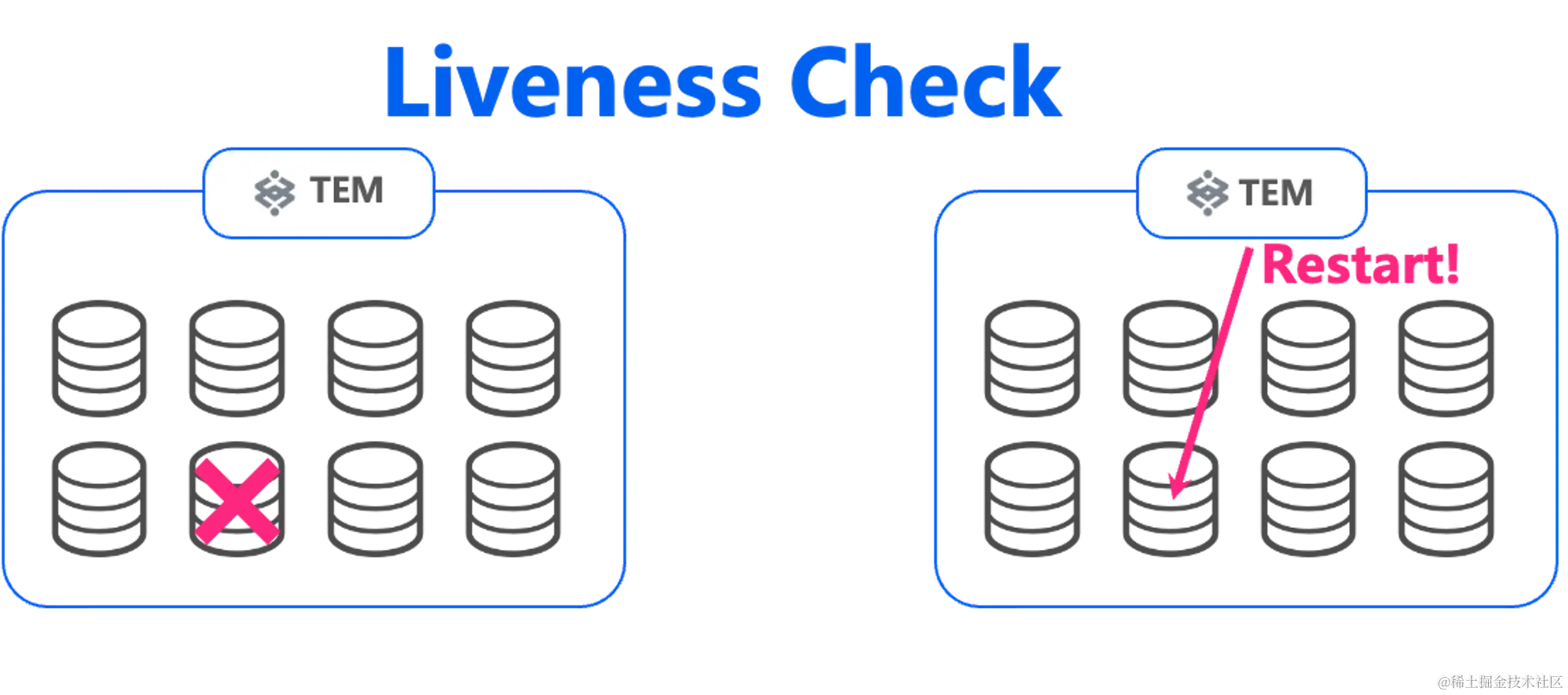 而 KMS 使用了弹性微服务之后,弹性微服务会对实例进行检测,若有问题会自动进行重启。这里主要是利用了弹性微服务的健康检测能力。