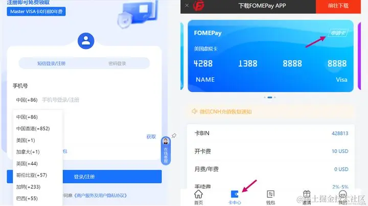 使用手机号或者邮箱注册账号,然后在卡中心申请卡,找到卡资料填入到刚才的Apple绑定页面。