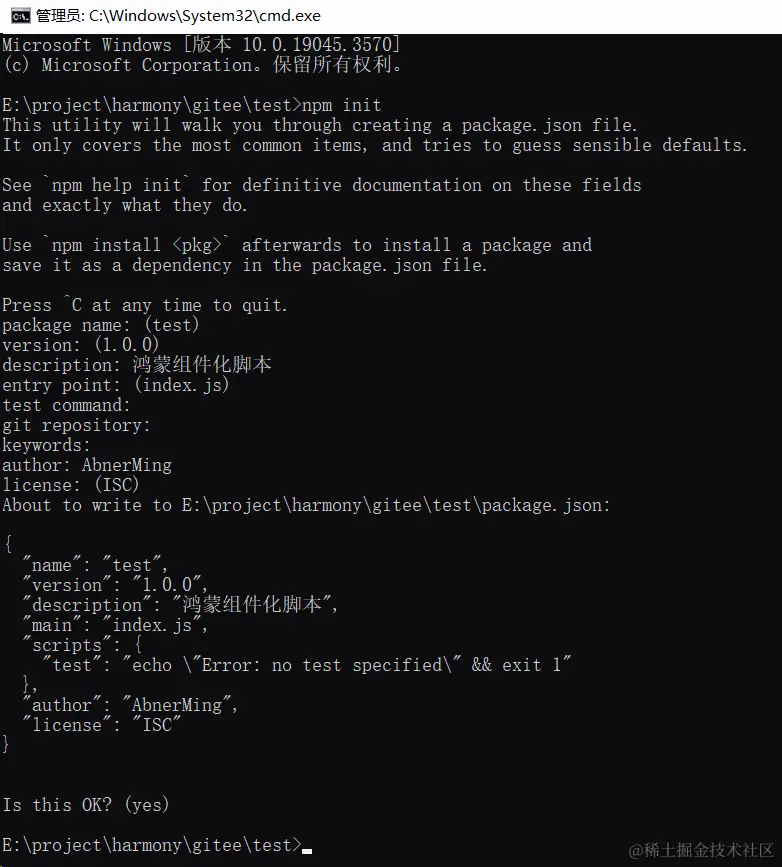 nodeJs环境,在安装DevEco Studio的时候就已经配置完成,检验是否安装,可以在命令行中执行如下命令: