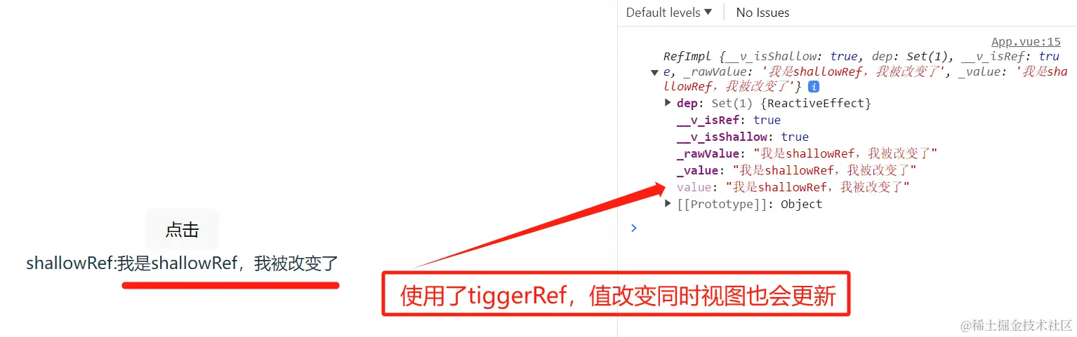 - ref 和 shallowRef 不能写在一块,不然会影响shallowRef 造成视图更新