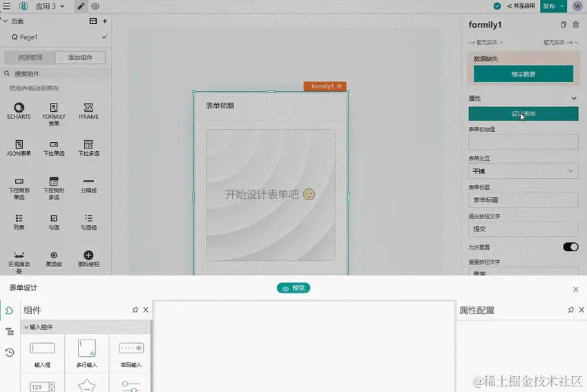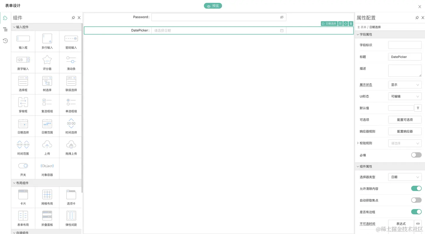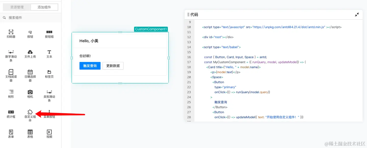 - 对于业务所需的个性组件,支持通过编写代码或者接入企业自身的组件库(企业版中支持)