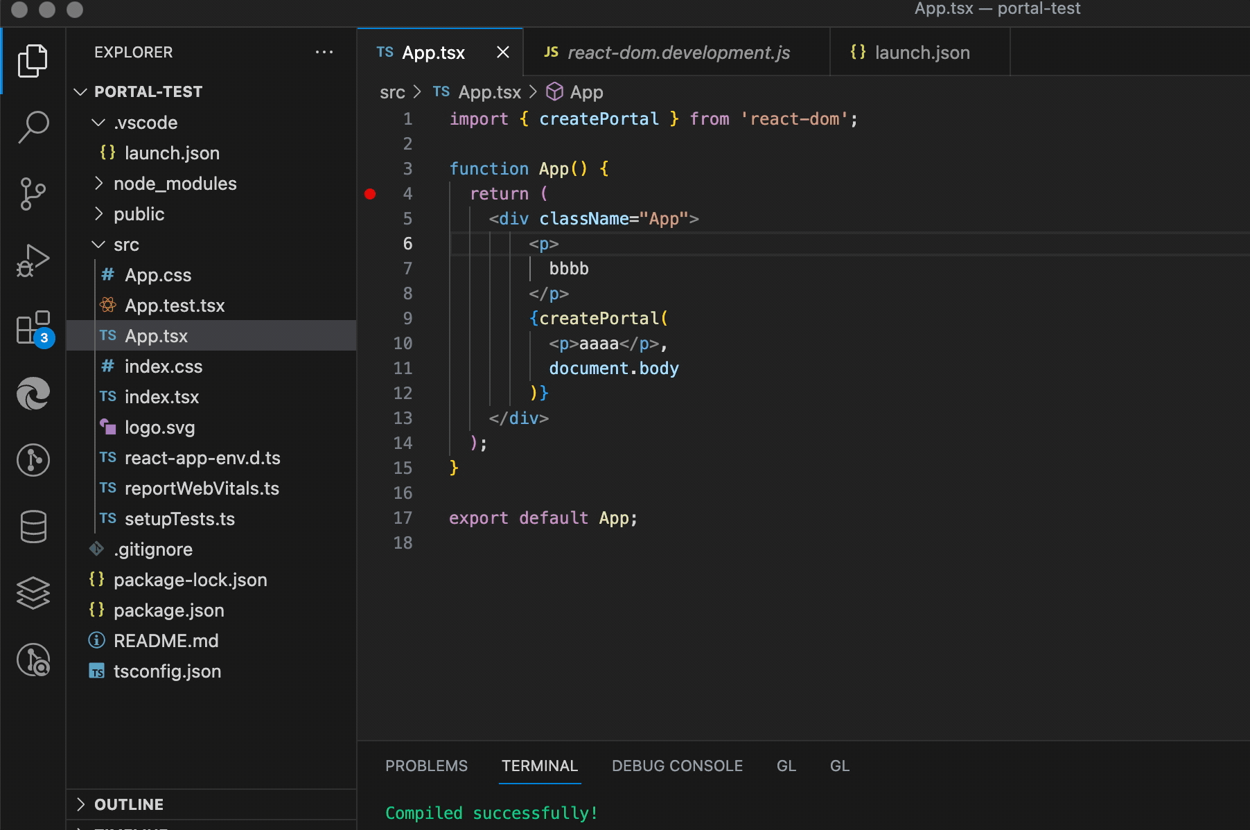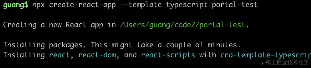 npx create-react-app --template typescript portal-test