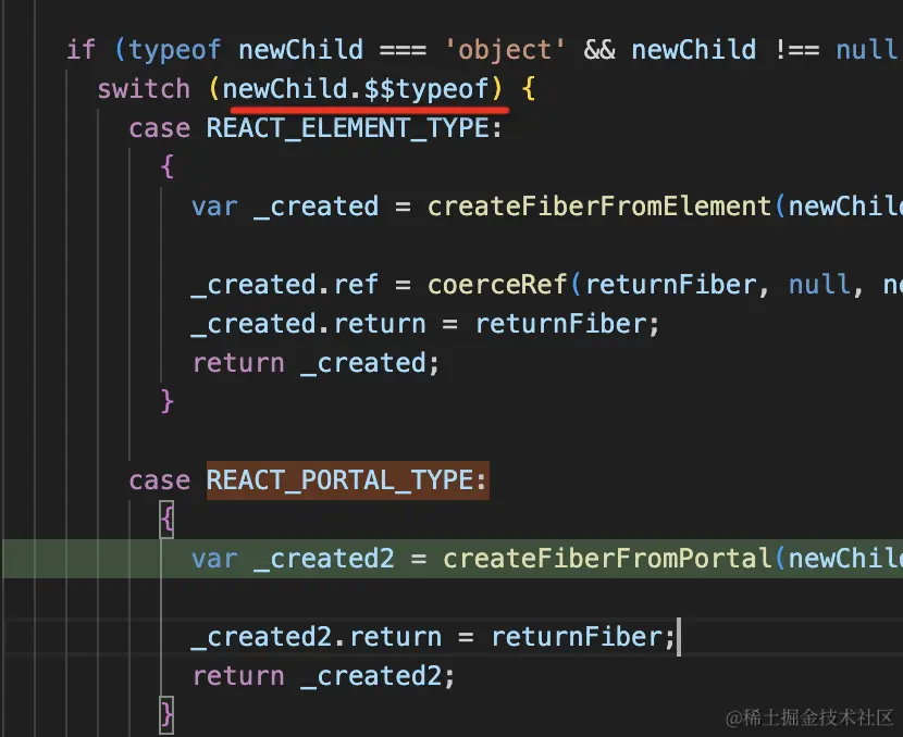 搜索这个 REACT_PORTAL_TYPE,你会找到它转成 fiber 的代码: