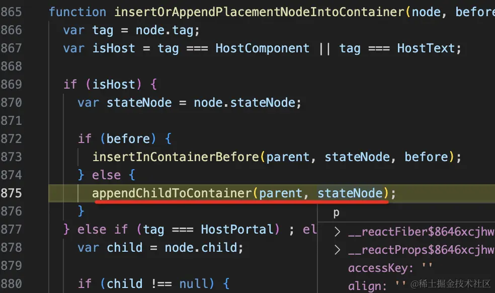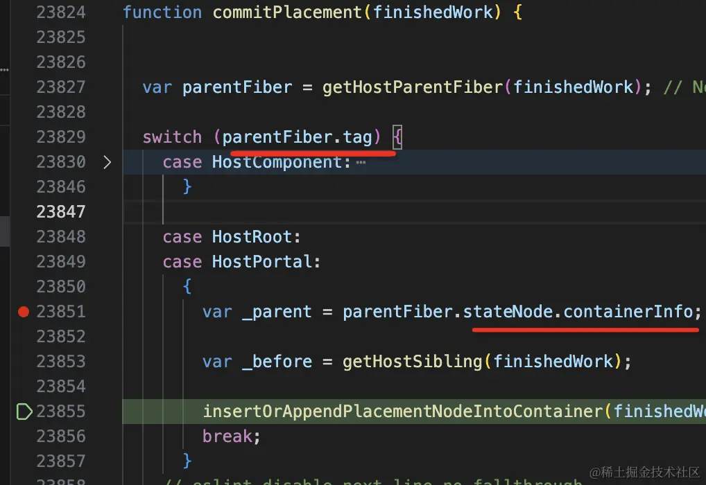 可以看出来,这里是根据父 fiber 节点的类型,来判断如何插入这个节点。