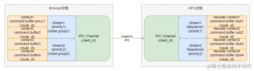 command buffer。 - 每个 command buffer 都对应一个 GL context,在相同stream中的GL Context都属于同一个