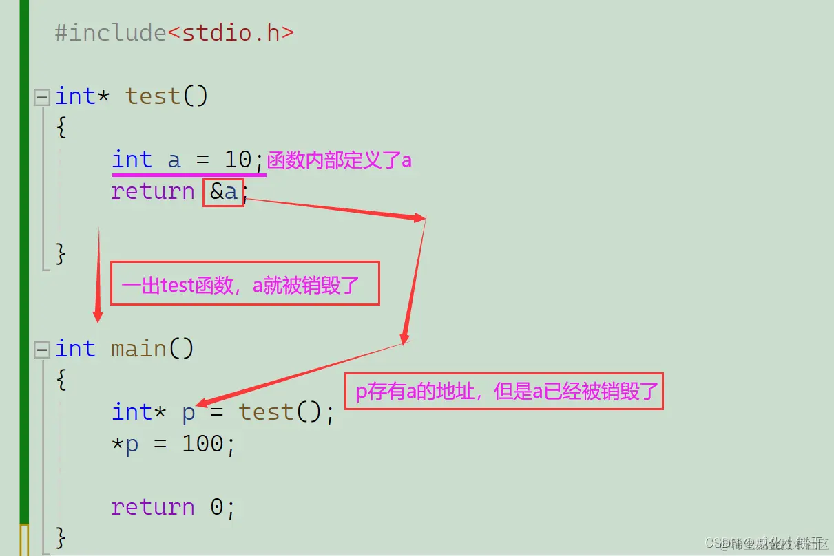 - 避免返回局部变量的地址