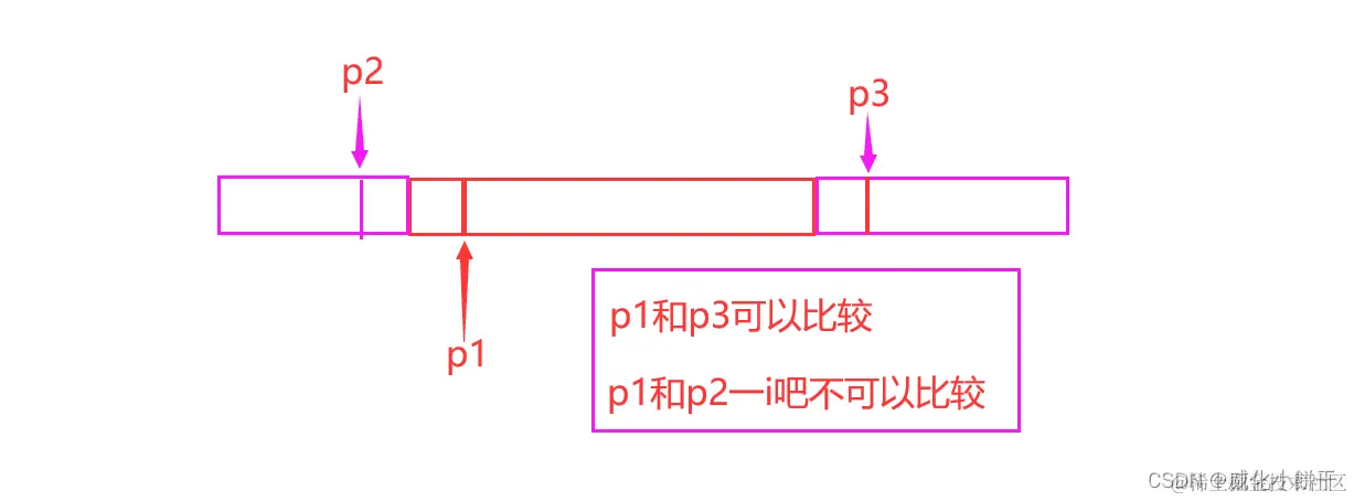 允许指向数组元素的指针与指向数组最后一个元素后面的那个内存位置的指针比较,但是不允许与指向第一个元素之前的那个内存位置的指针进行比较。