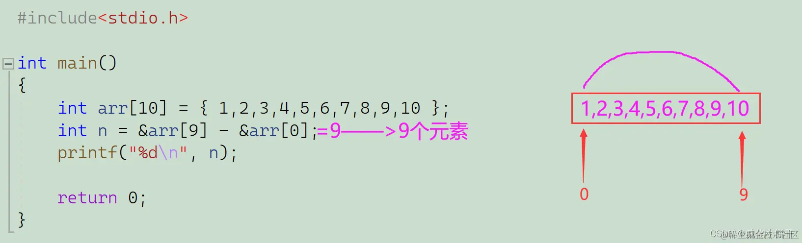 指针-指针得到的是指针和指针之间的元素个数。
