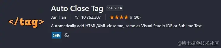 当你添加一个新的HTML标签时,这个扩展功能会自动添加相应的闭合标签。这是一个非常优秀的扩展,下载量也是千万级的,可以看到很多人对它的肯定。但现在vscode已经内置了它的主要功能,我们没必要再安装一遍,占用宝贵的内存资源。