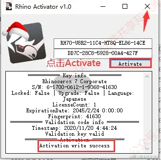 12.点击【Activate】提示【……success】说明激活成功,随后点击右上角【X】退出。