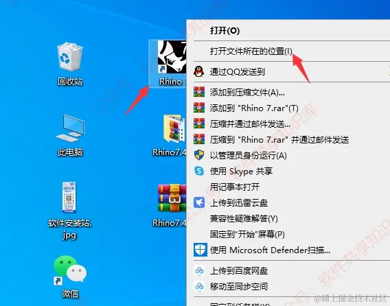 9.回到桌面,右键【Rhino 7】图标,选择打开文件所在位置。