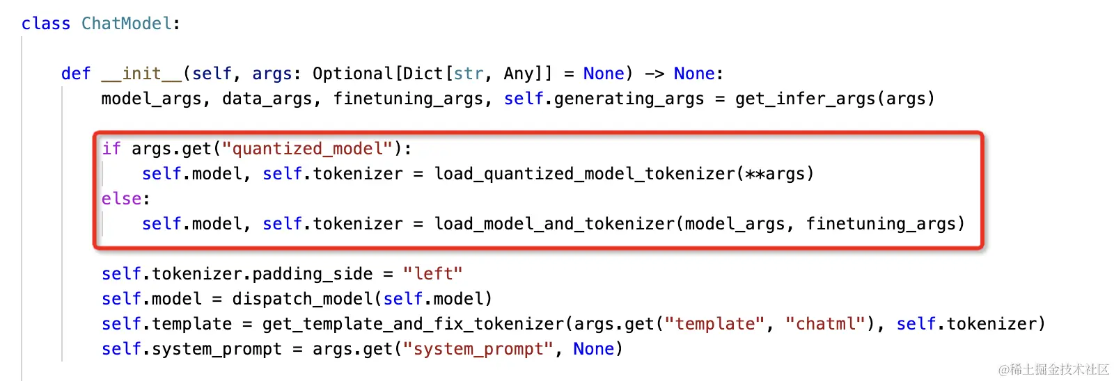 上面量化结束后,如果直接使用下面的代码加载量化模型会报错,