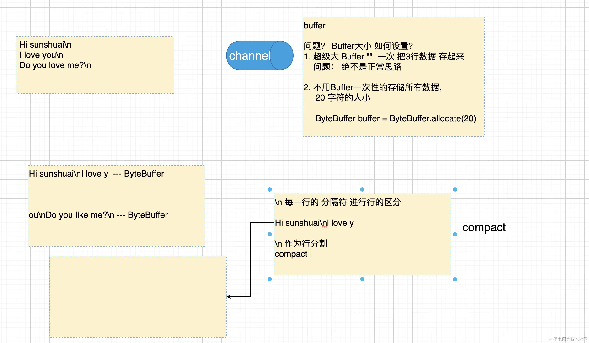 2. compact进行处理,把第一次没有读取完的数据,向前移动和后面的内容进行整合。