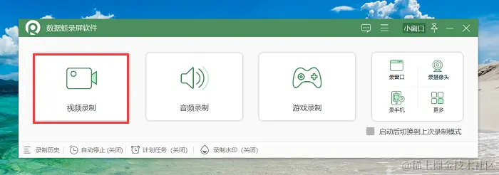 步骤1:前往数据蛙录屏软件官网下载并安装它,打开软件您可以看见一个友好的用户页面,在众多录制模式中,我们选择视频录制。