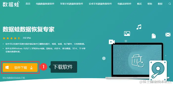 步骤1:首先,您需要从数据蛙恢复专家的官方网站下载并安装软件。官方网站提供了Windows和Mac版本。(本文以Windows电脑为例)