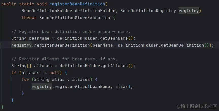 BeanDefinitionReaderUtils.registerBeanDefinition(definitionHolder, this.registry);