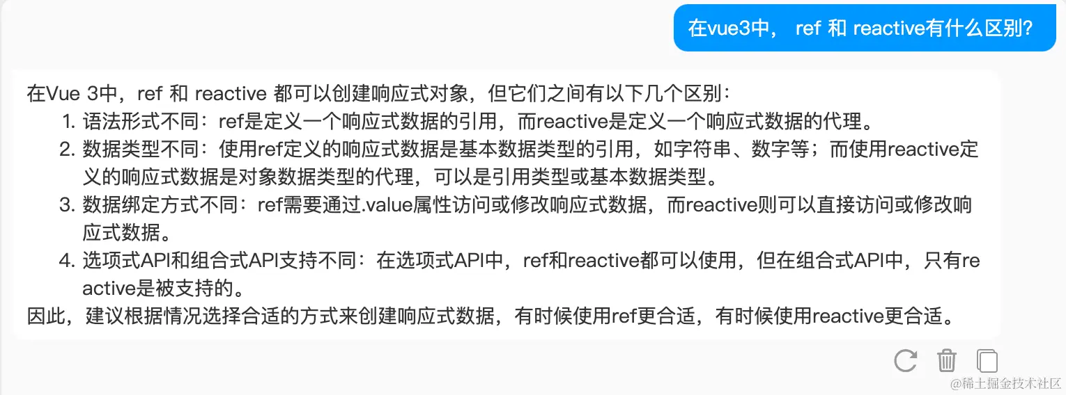 写下这篇文章只是为了解答自己的疑惑,也可能是强迫症犯了,非要弄清楚为什么有各种各样的说法。翻了许多文章,反复研究了几遍响应式基础,最终释然,不再纠结,自己爱怎么用就怎么用,但是对于那些 ref用于包装基本数据类型(如数字、字符串),而reactive用于包装对象。 的说法。自己心里也有个底。