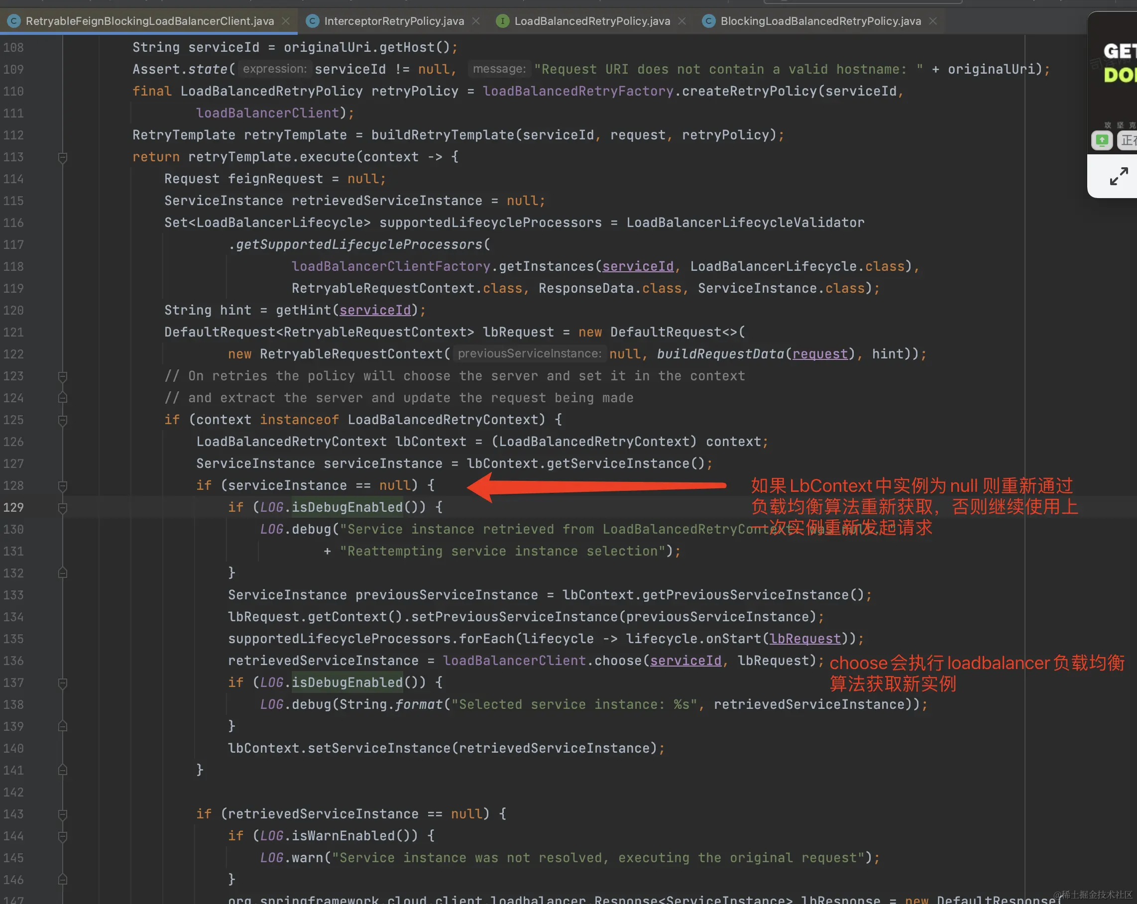 - loadbalancer是基于spring-retry组件实现的开发者无法重写内部逻辑。