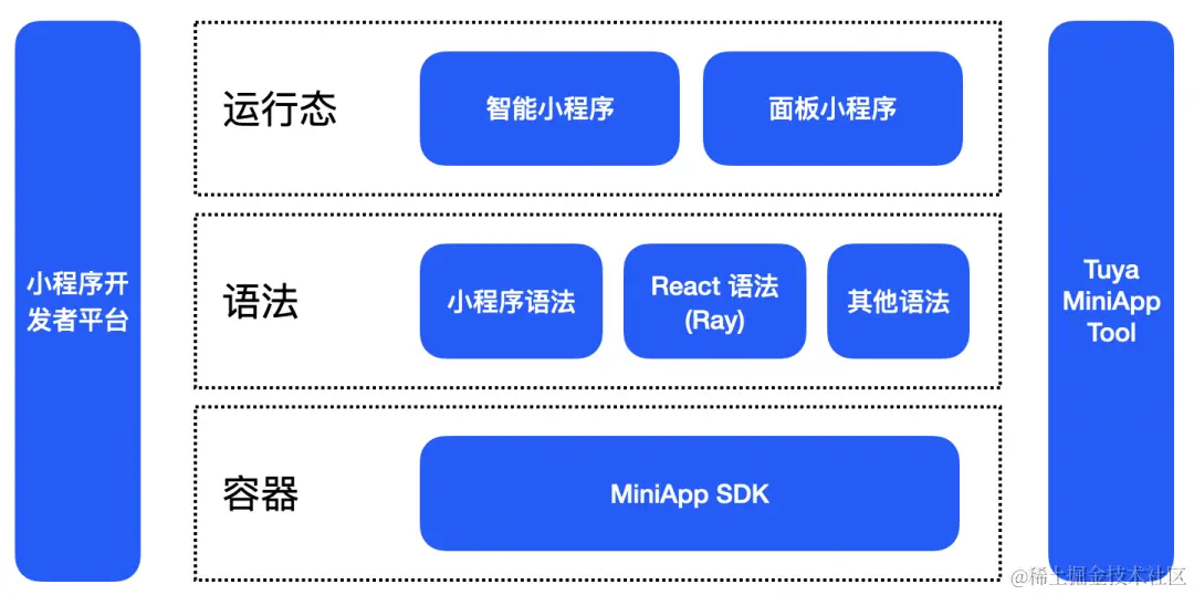 其中,**Ray 是涂鸦自研的跨端应用开发框架。**它支持将 React 的代码通过编译和运行,转化成小程序语法,使其最终能在小程序容器内运行起来。